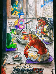 花魁、妖怪、お化け、オリジナルイラスト描いています。